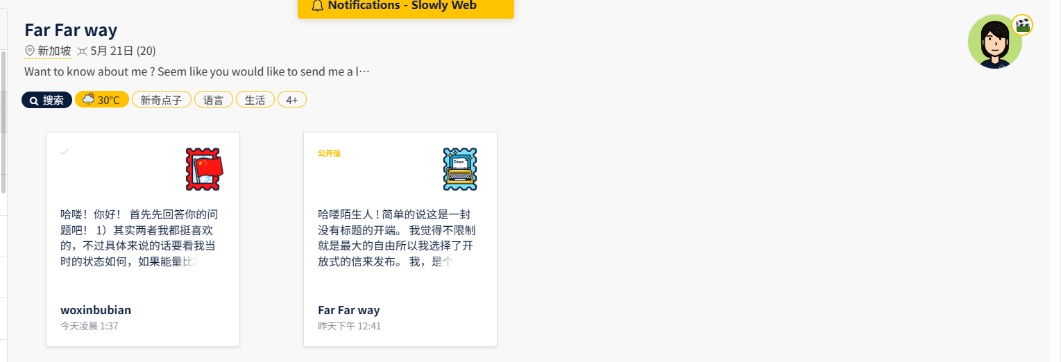 昨天收到一封信,回了,但是对方还没有看,也没有写回信。不知道这封会不会石沉大海呢。